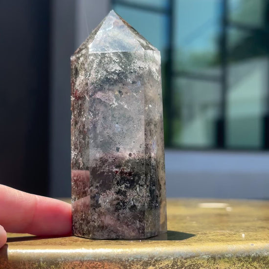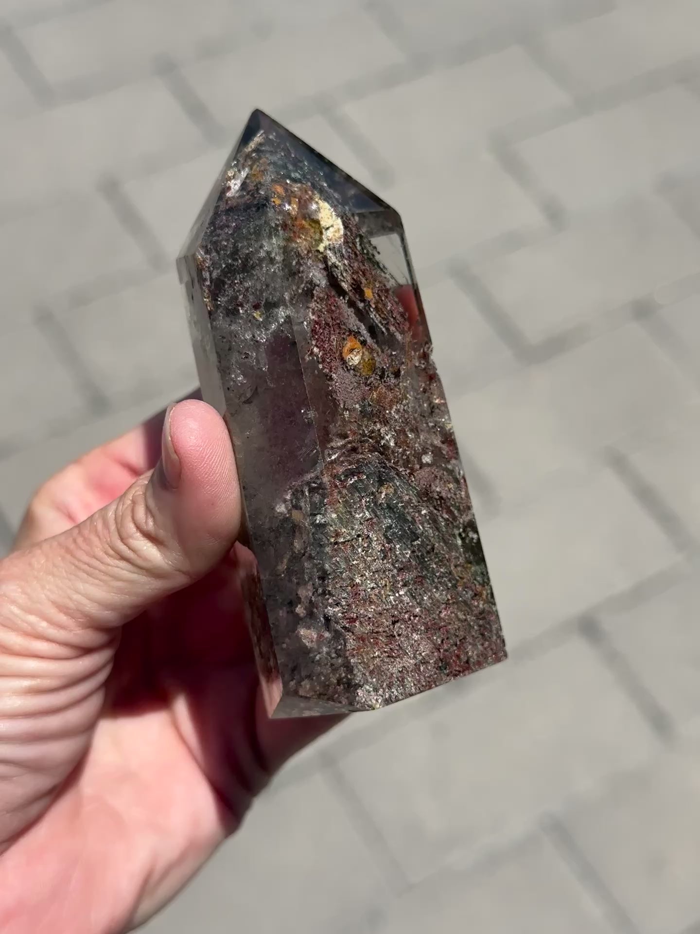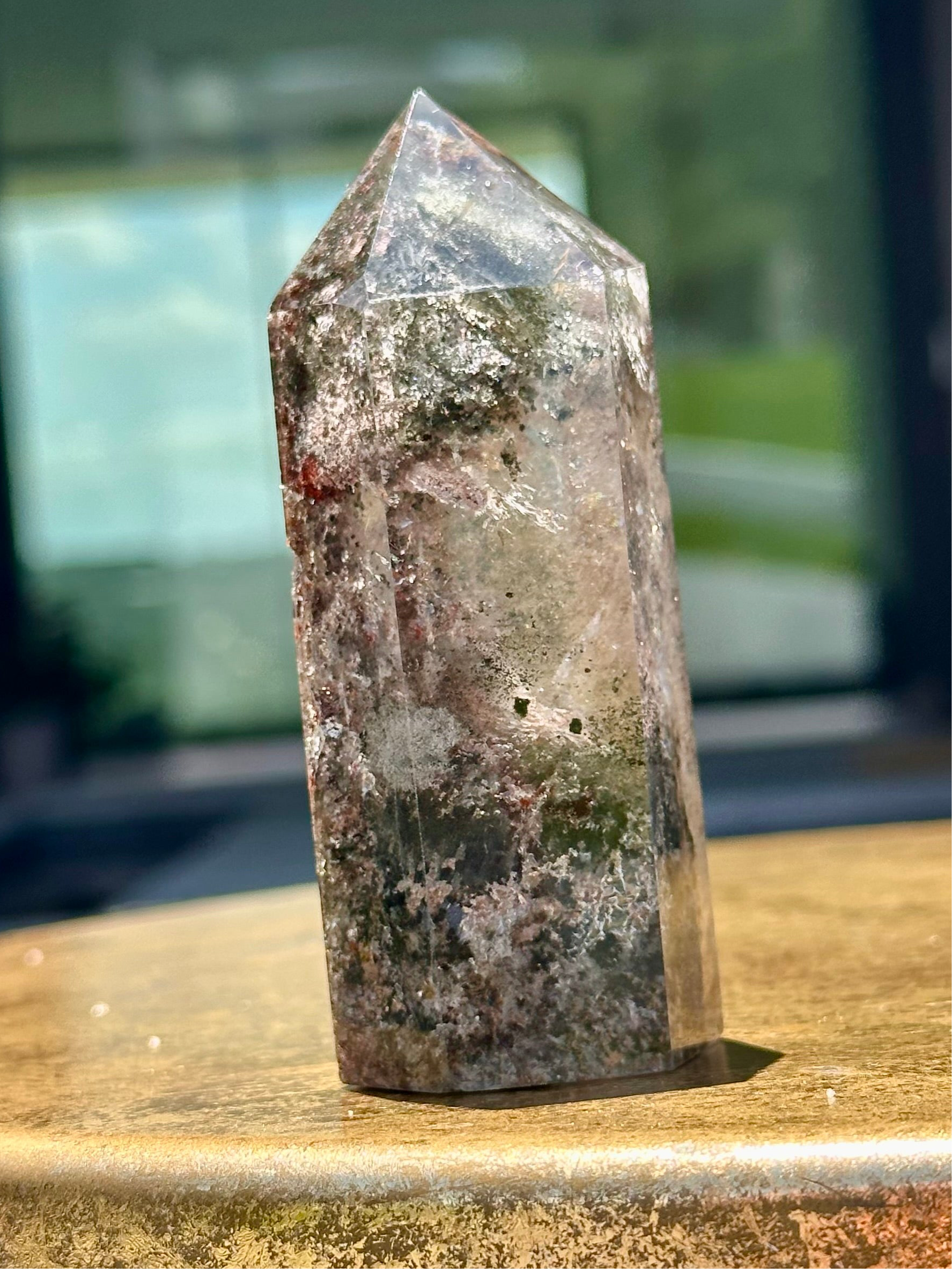 Generators are like a fountain for energy and you can certainly get lost in this piece. With shades of pink, rust, and green it looks like another world hiding inside beautiful clear quartz on all six sides.