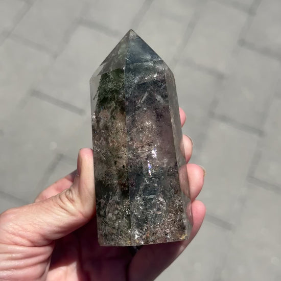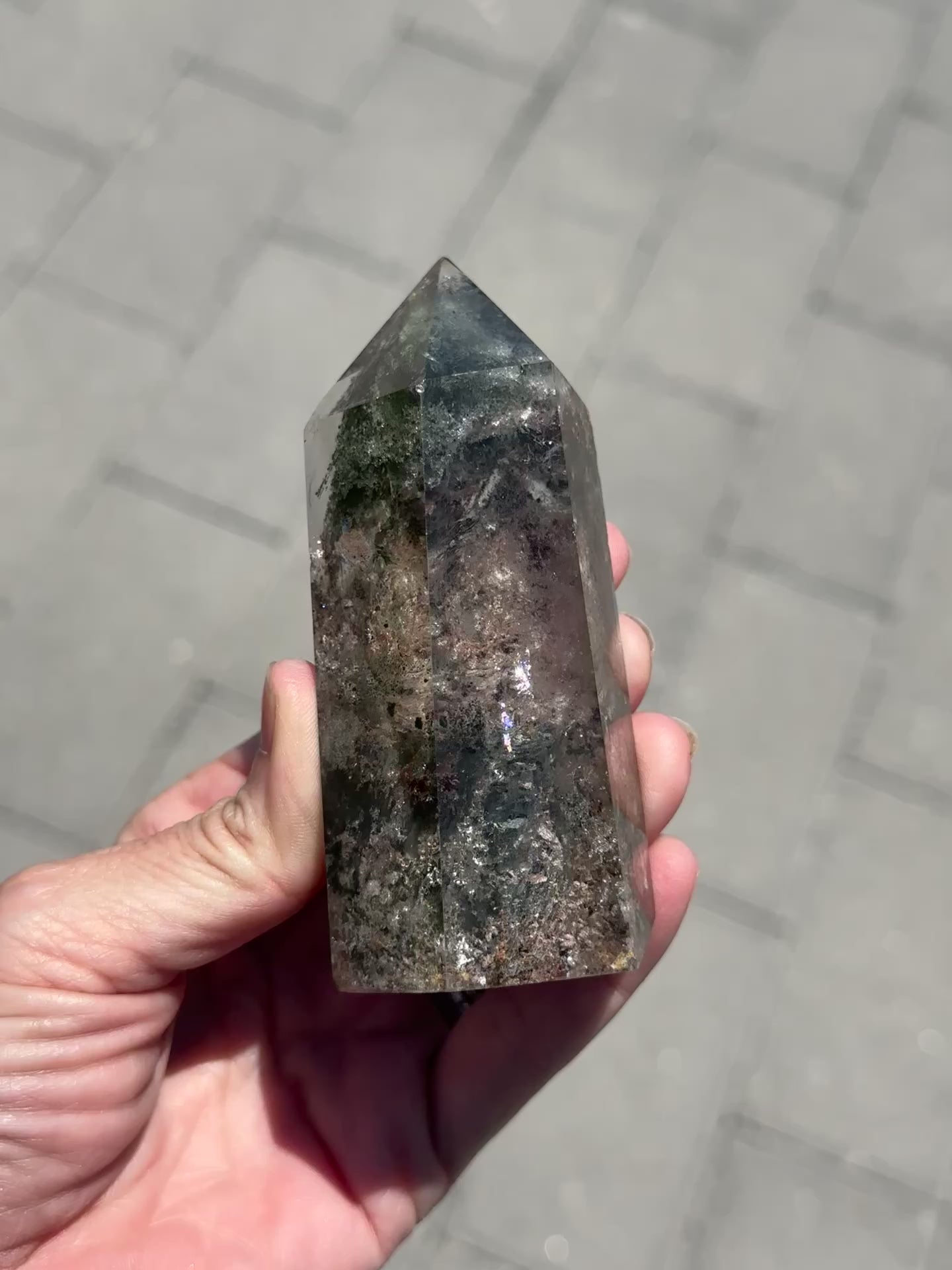Shaman’s dream stone, also known as lodolite in quartz or garden quartz, is super magical. Within this piece, history and time are captured. Healers call this the ‘Worlds Within Stone.’