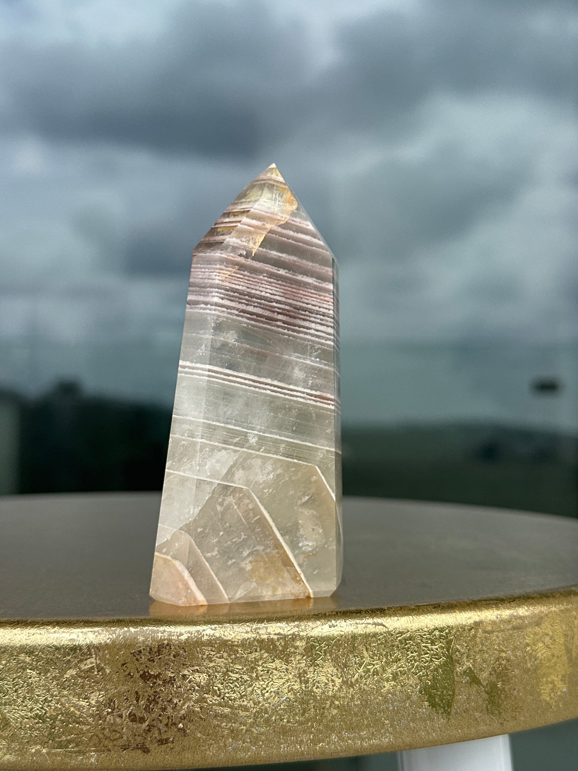 Also known as Lodolite, Garden Quartz is the most beautiful, unique of crystals that stimulates the creative mind and encourages your inner dreamer! This tower has beautiful banding and is in multiple shades of peach. It’s absolutely stunning in the light as well.
