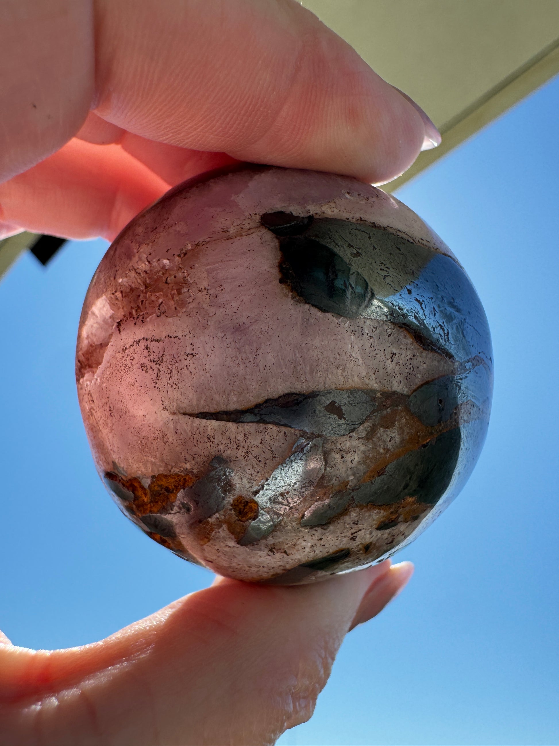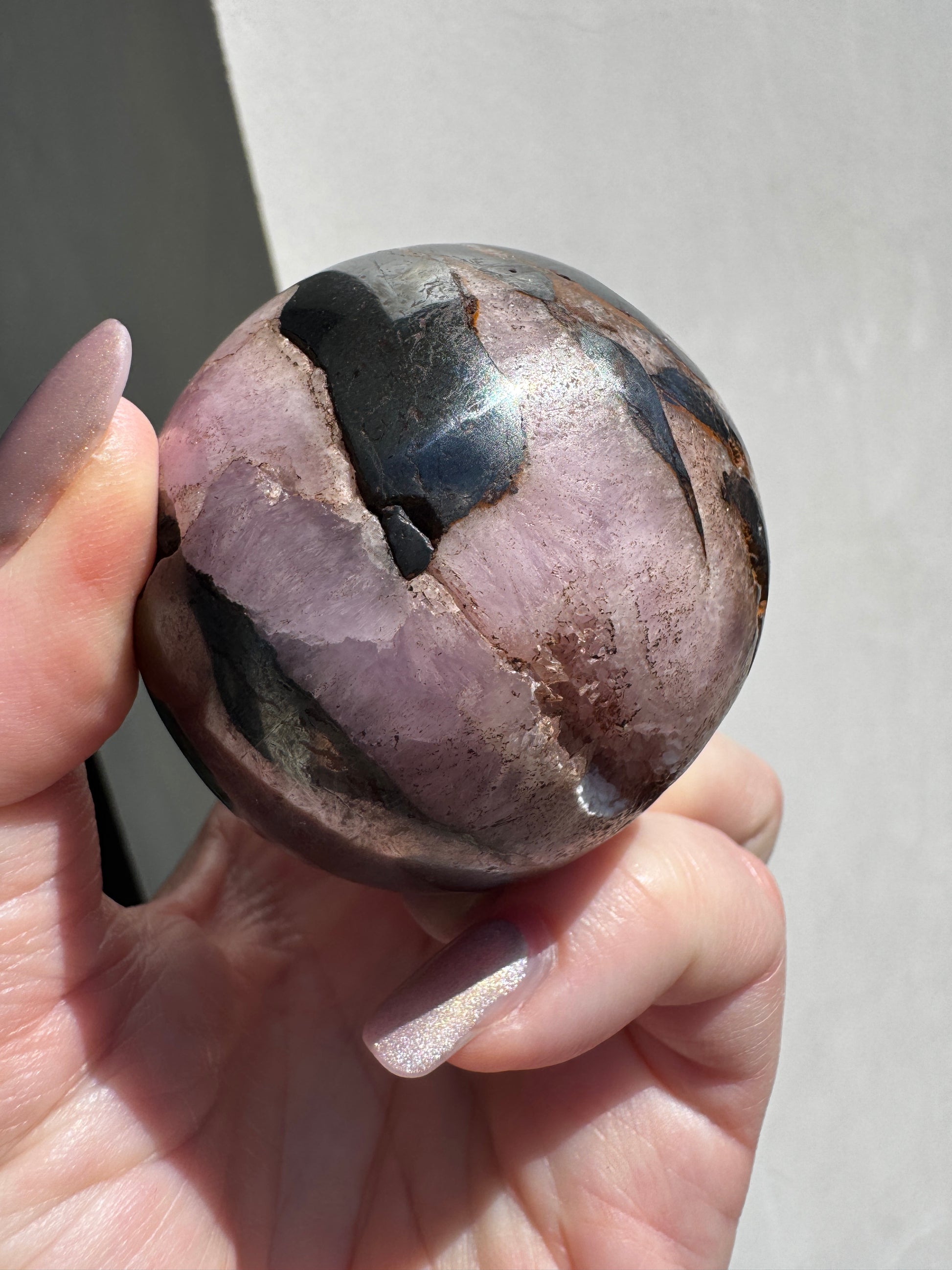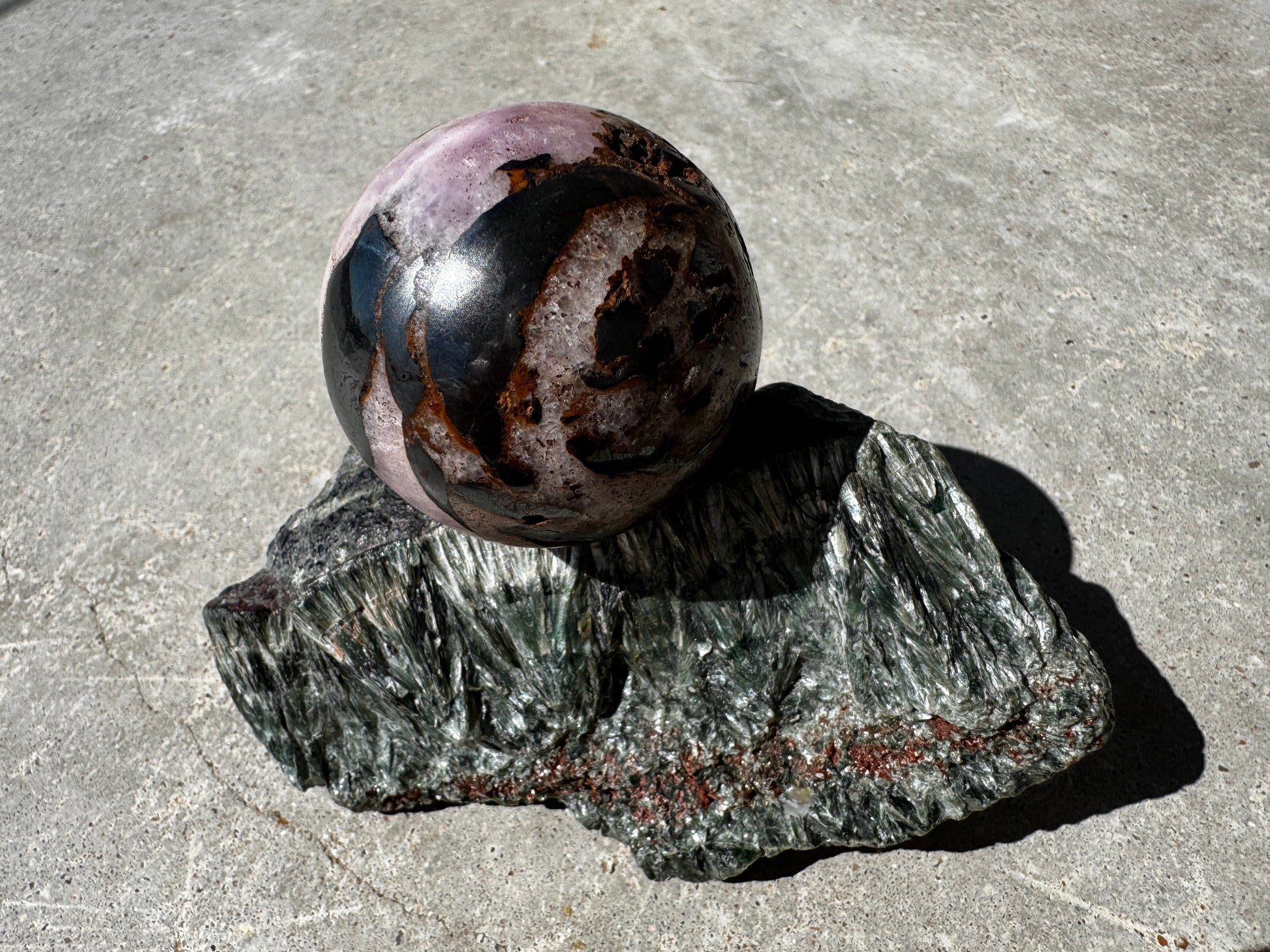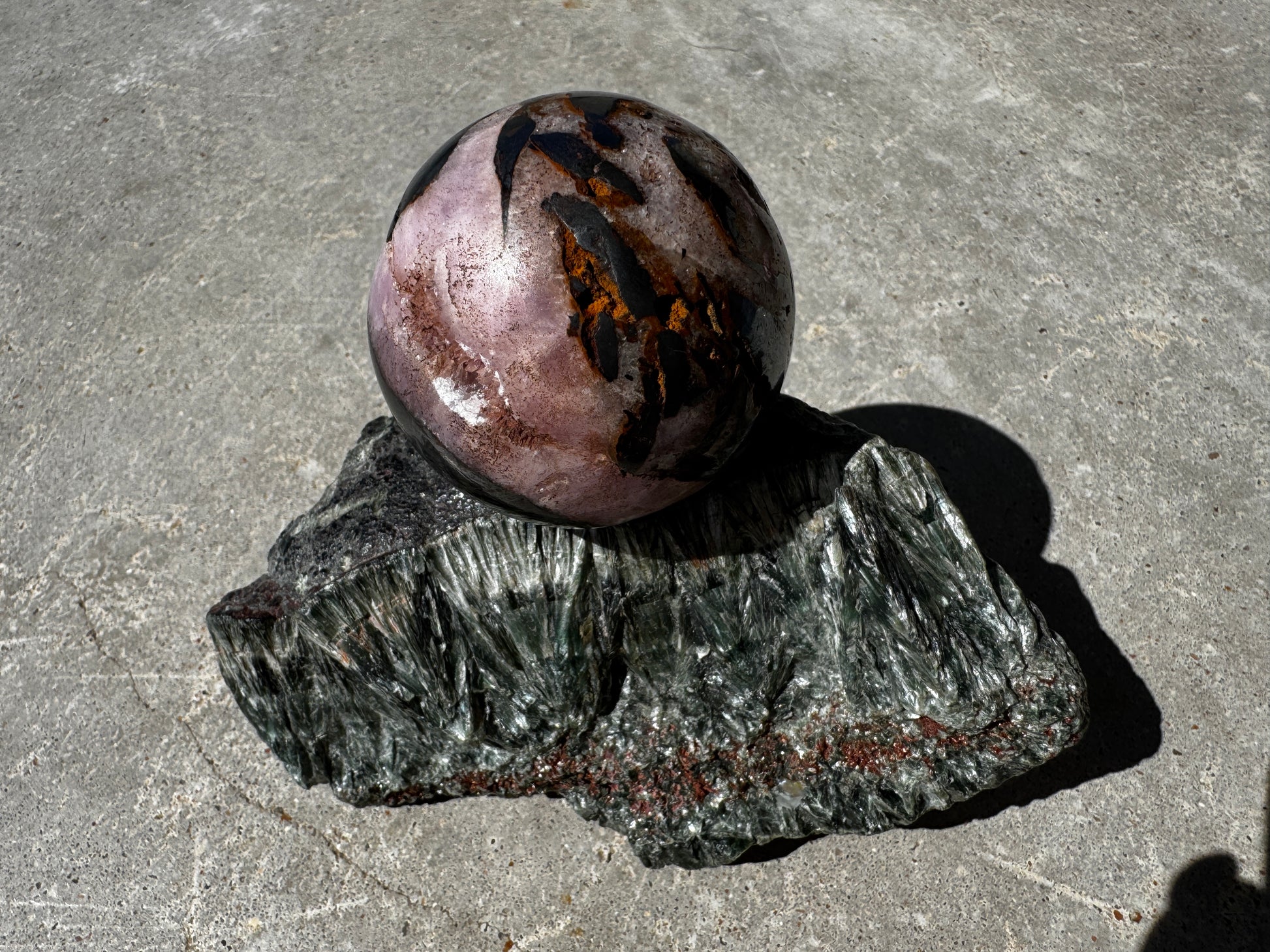 Pink Aragonite & Magnetite Crystal Sphere for the serious crystal collectors 259 Grams