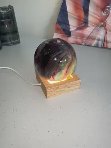 Flourite is often used to enhance your mental clarity. Place this is an area of work or study to help organize your thoughts, stay focused and even aid in making decisions. Many people say it will melt away their mental fog and any fears of the future. This sphere is a beautiful combination of green and purple, with the classic flourite banding pattern. Green flourite promotes harmony and purple fluorite enhances clarity making this a power packed piece that you’ll enjoy on or off the light stand.