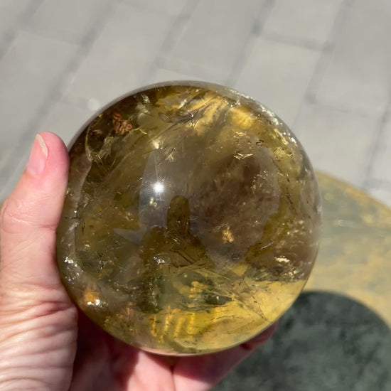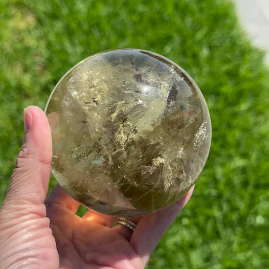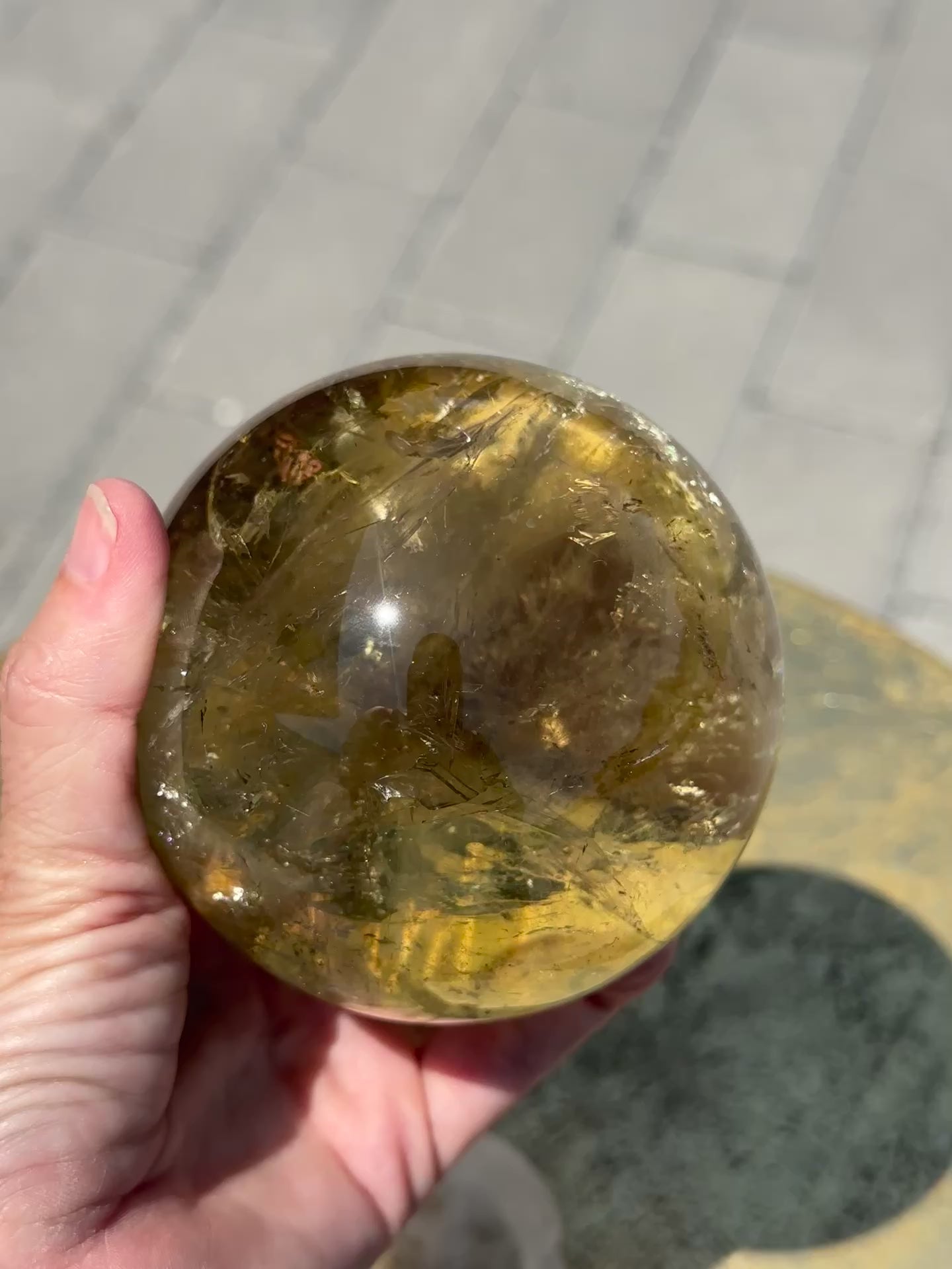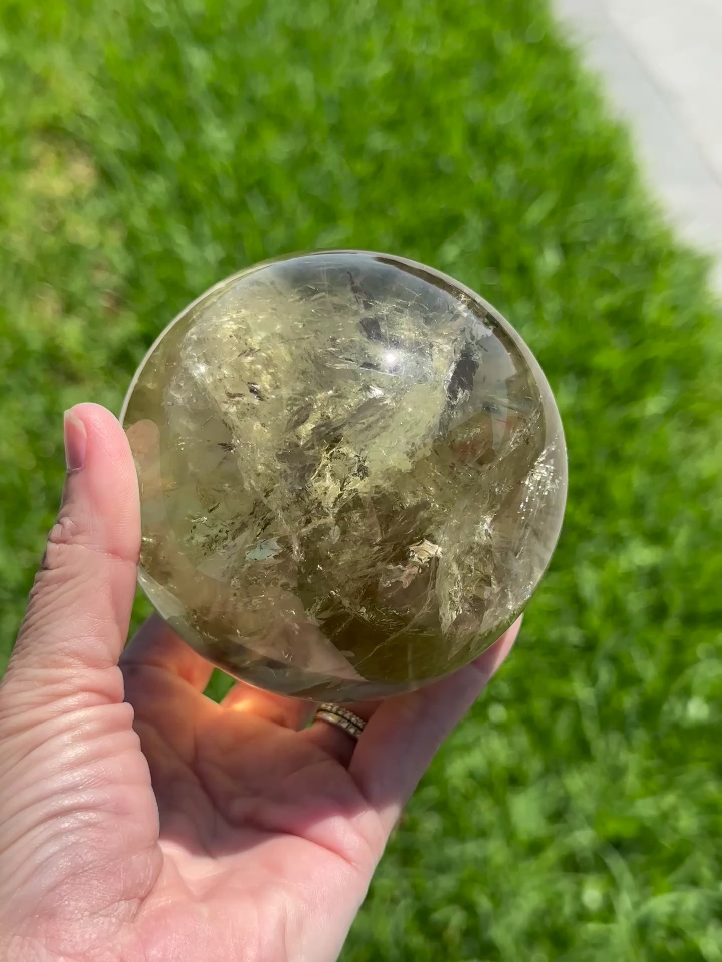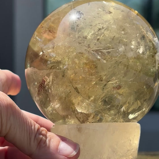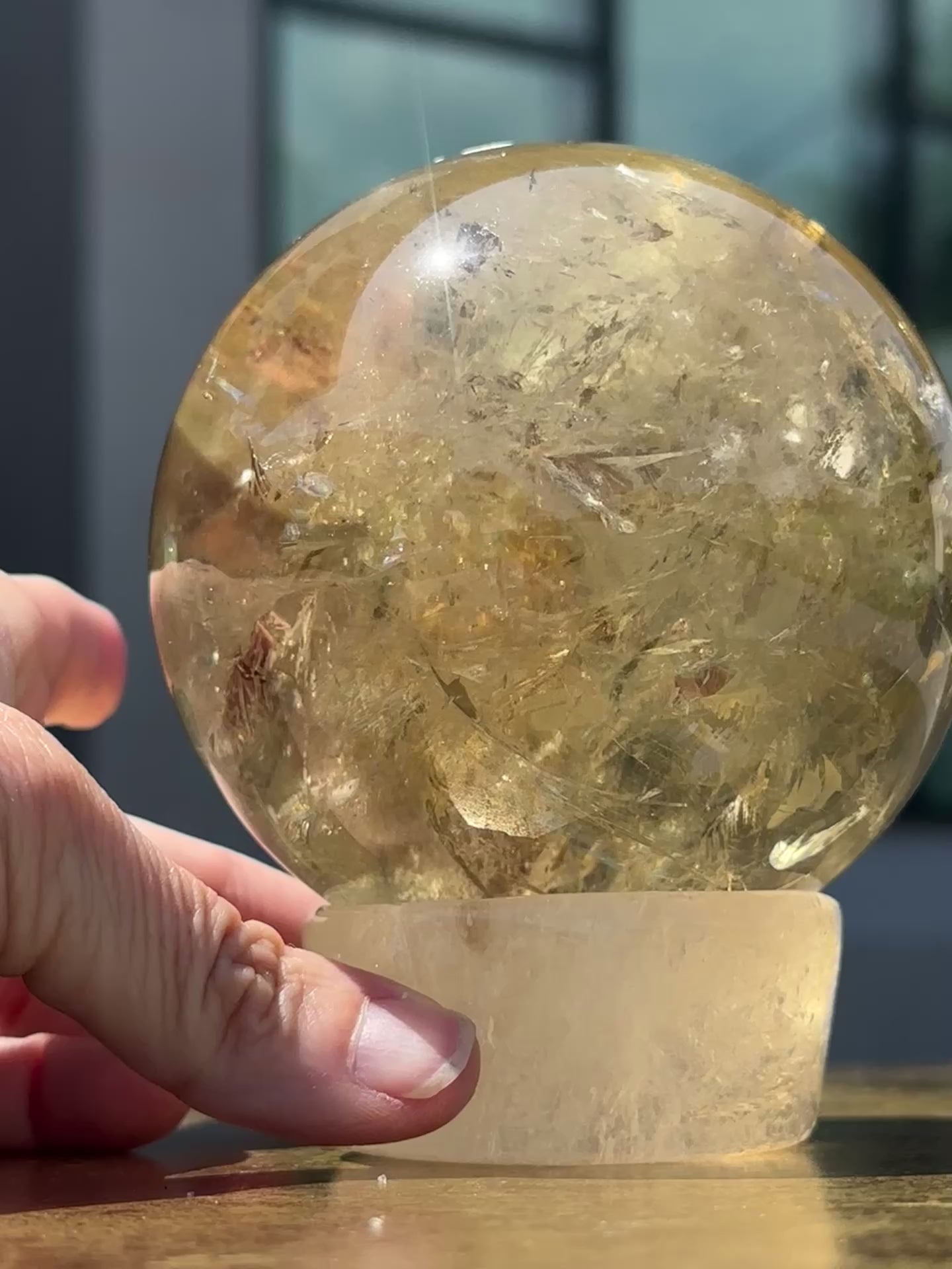 The clarity of this citrine is top quality and there are rainbows galore! One of the striking features of this sphere are the phantom lines Phantoms are associated with the third eye and connecting to the higher realm. They will assist you with your intuition, wisdom, and spiritual understanding as you transform to the next level of being your best self! This piece truly has it all - phantoms, rainbows, sphere shape, and top quality citrine!